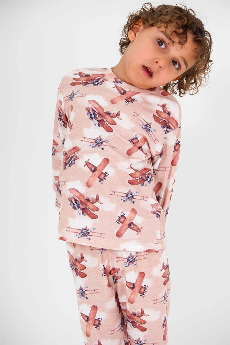 بلوز شلوار خانگی هواپیما ملخی قهوه ای