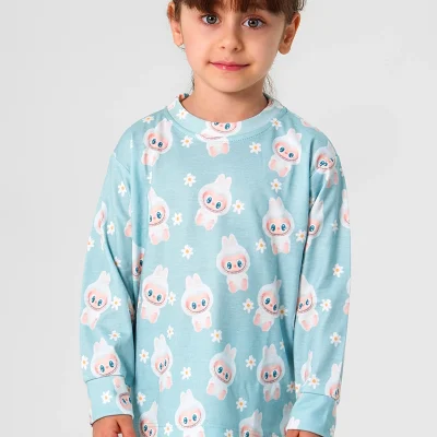 بلوز شلوار خانگی داینو سبز آبی (نسل Z)
